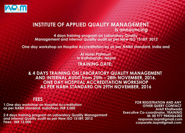 4 Days Training Programe on Laboratory Quaity Management and Internal Audit as per ISO 15189 2012 at Katmandu
